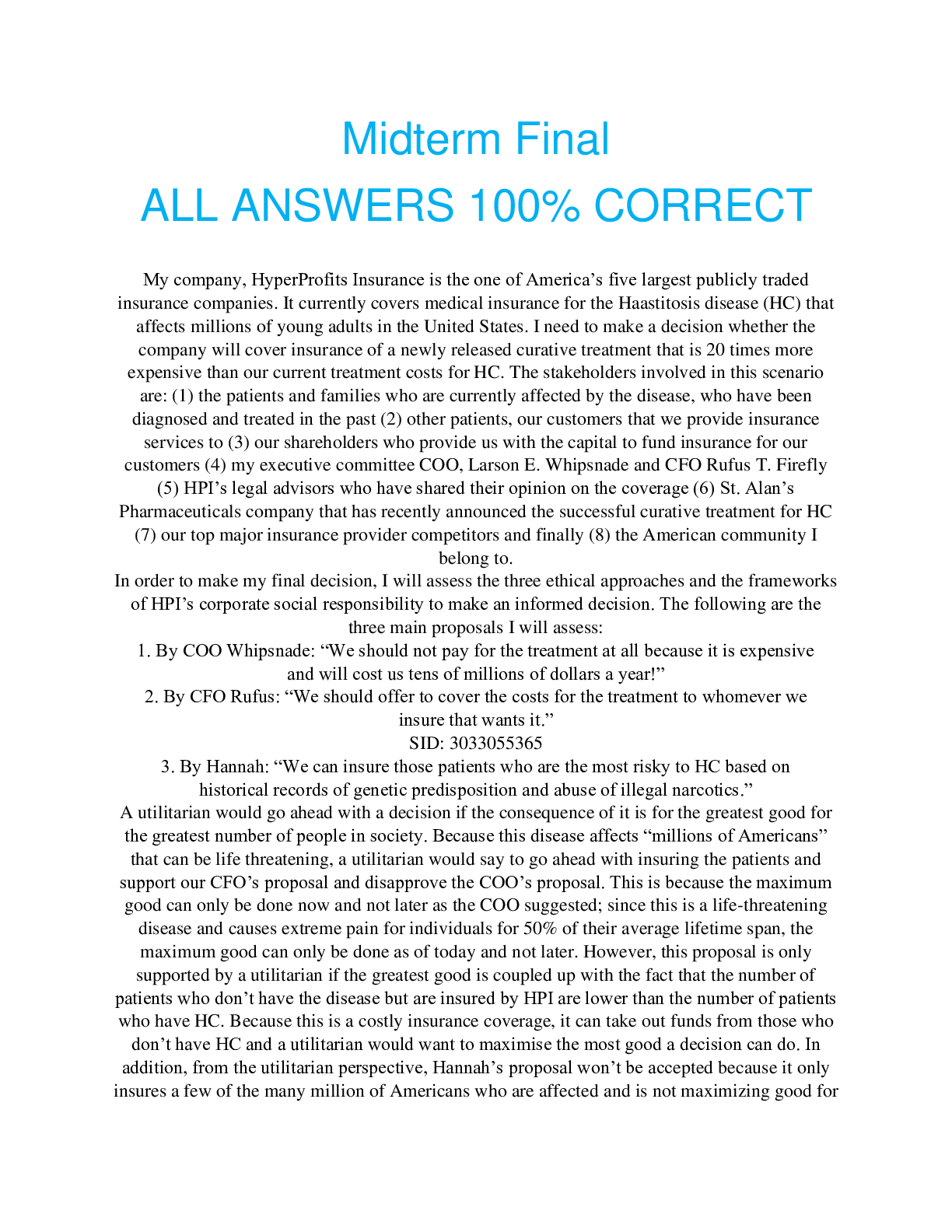 Business Research > EXAM > Midterm Final ALL ANSWERS 100% CORRECT (All)