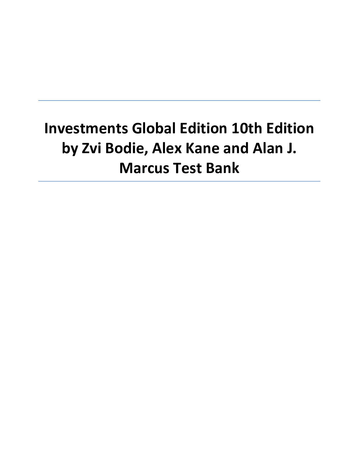 Economics > EXAM > Investments Global Edition 10th Edition by Zvi Bodie, Alex Kane and Alan J. Marcus Test Bank (All)