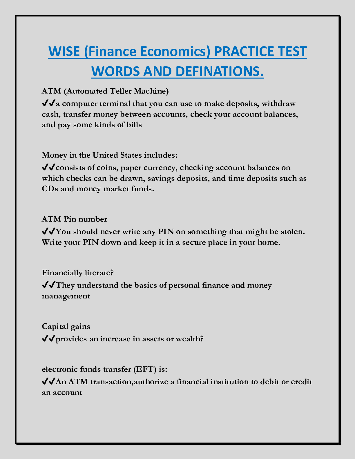 Economics > EXAM > WISE (Finance Economics) PRACTICE TEST WORDS AND DEFINATIONS. (All)