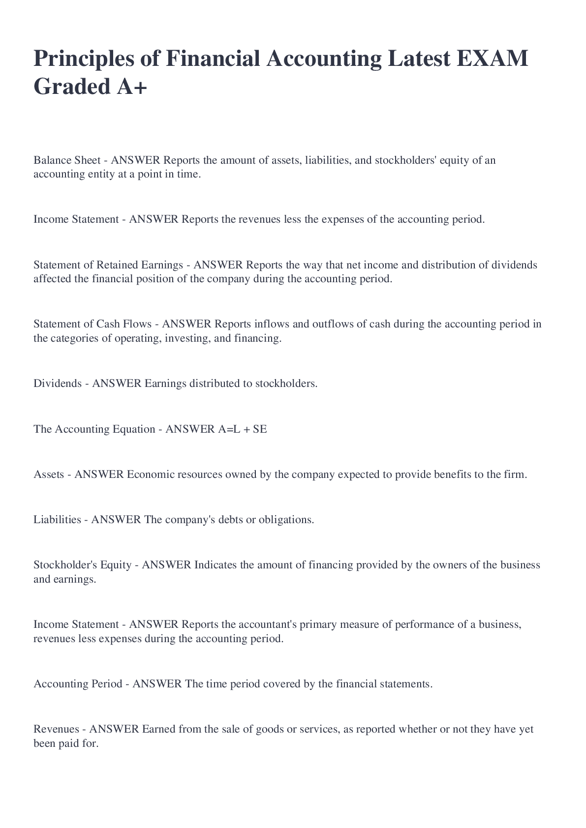 Economics > EXAM > Principles of Financial Accounting Latest EXAM Graded A+ (All)