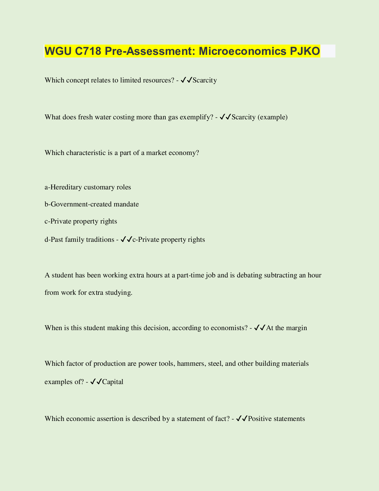 Economics > EXAM > WGU C718 Pre-Assessment: Microeconomics PJKO | 60 Questions with 100% Correct Answers | Verified | Latest Update (All)