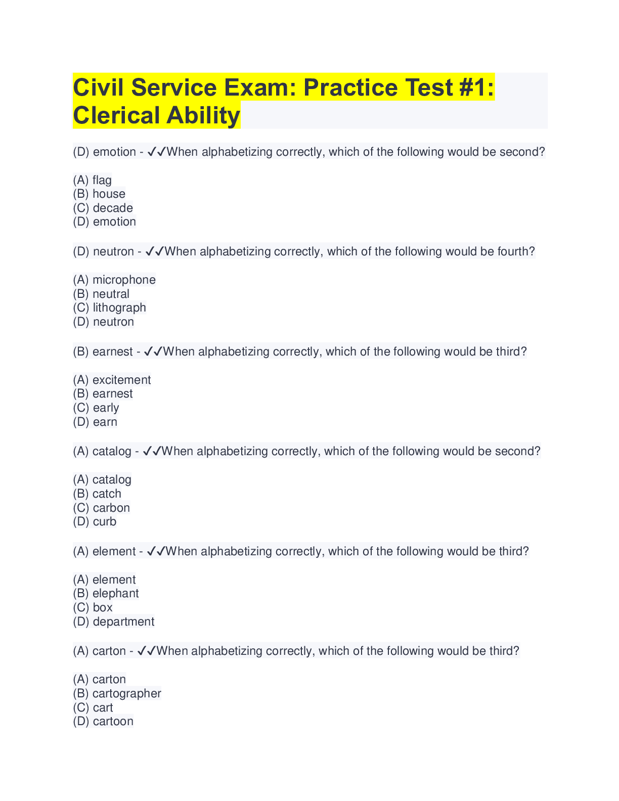 Classical Civilisation > EXAM > Civil Service Exam: Practice Test #1: Clerical Ability (All)