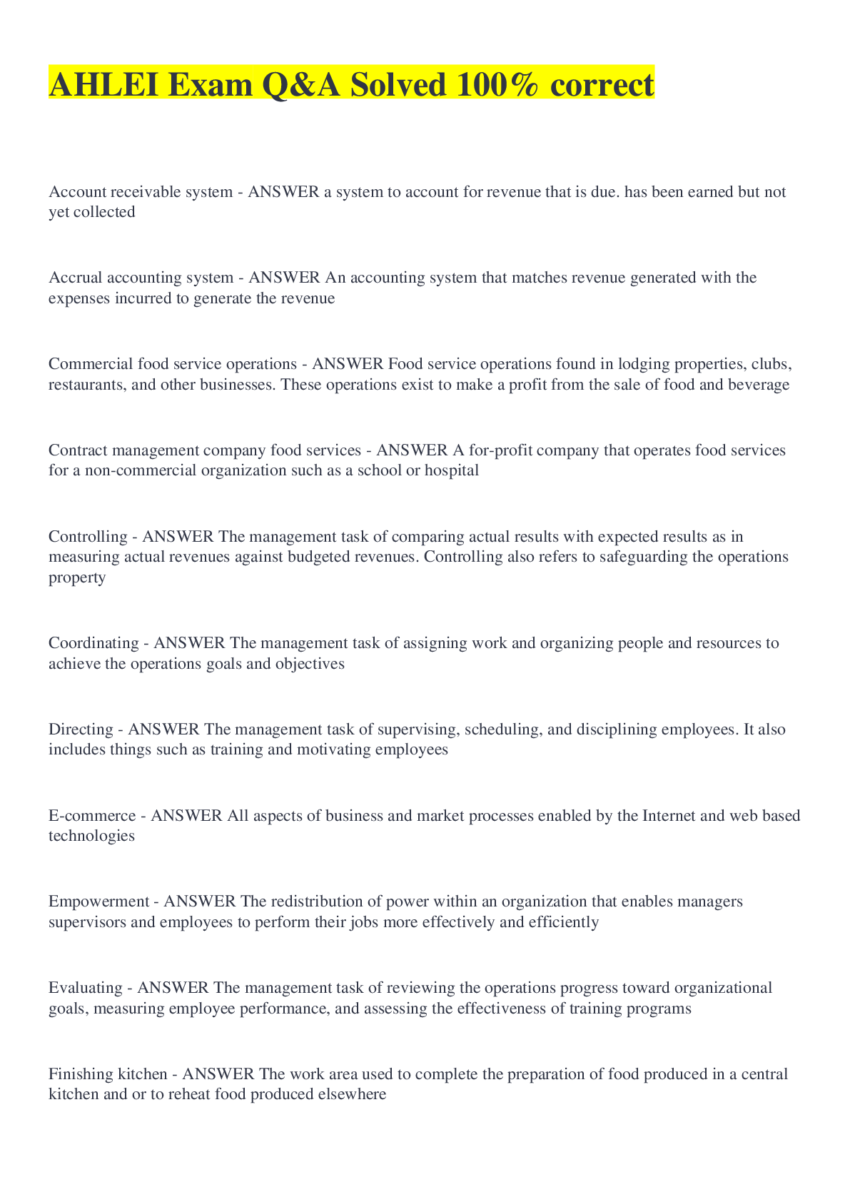 Business Studies > EXAM > AHLEI Exam Review with Complete Solution -checked- Graded A+ (All)