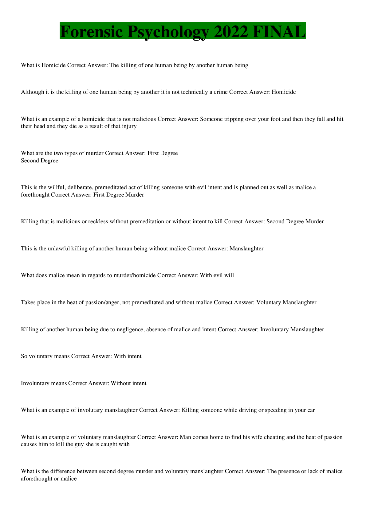 Forensic and Criminal Investigation > EXAM > Forensic Psychology 2022 FINAL EXAM (Graded A+ actual test) (All)