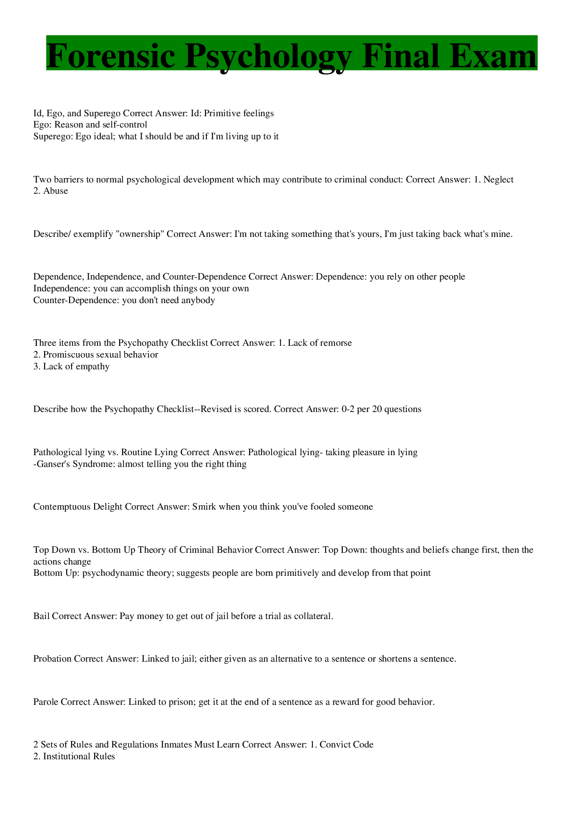 Forensic and Criminal Investigation > EXAM > Forensic Psychology Final Exam QUESTIONS AND ANSWERS (All)