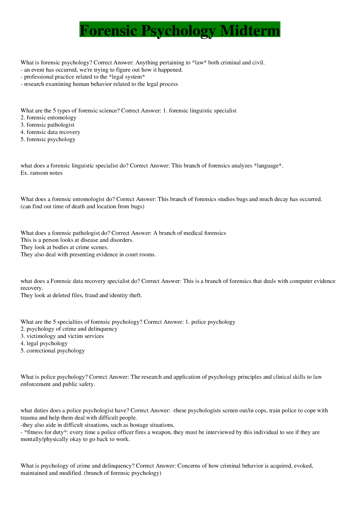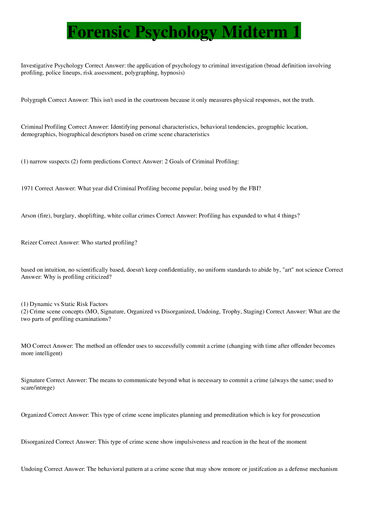Forensic and Criminal Investigation > EXAM > Forensic Psychology Midterm 1 QUESTIONS AND ANSWERS (All)