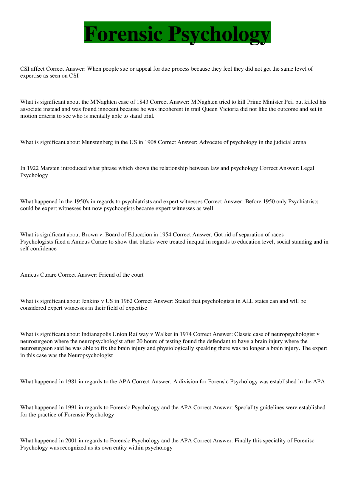 Forensic and Criminal Investigation > EXAM > Forensic Psychology QUESTIONS AND ANSWERS(SCORES 100%) (All)
