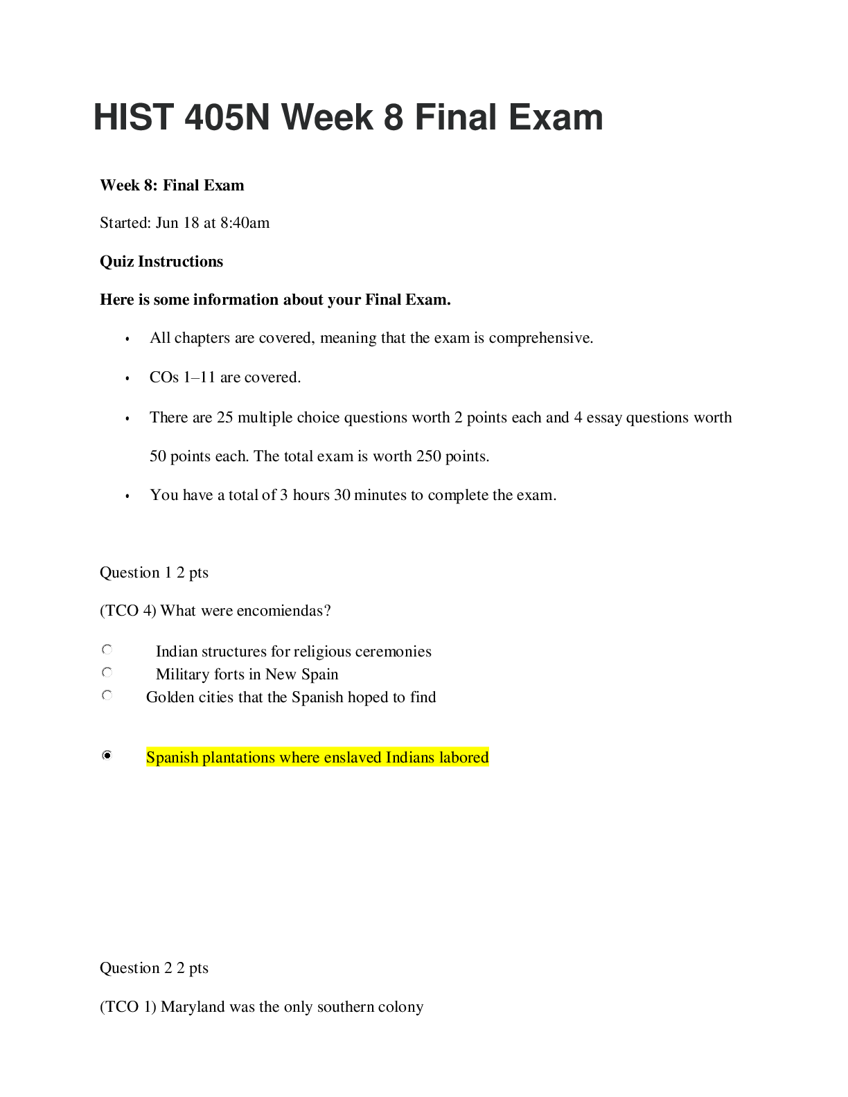History > EXAM > US History 1 Milestone 2 Questions and Answers,100% CORRECT (All)
