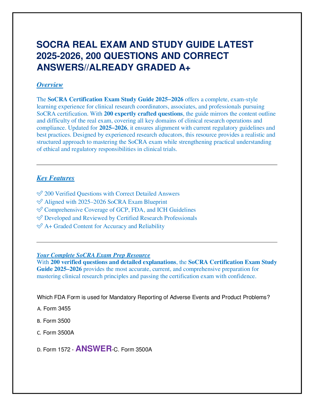 Law > EXAM > SOCRA REAL EXAM AND STUDY GUIDE LATEST 2025-2026, 200 QUESTIONS AND CORRECT ANSWERS//ALREADY GRADED A+ (All)