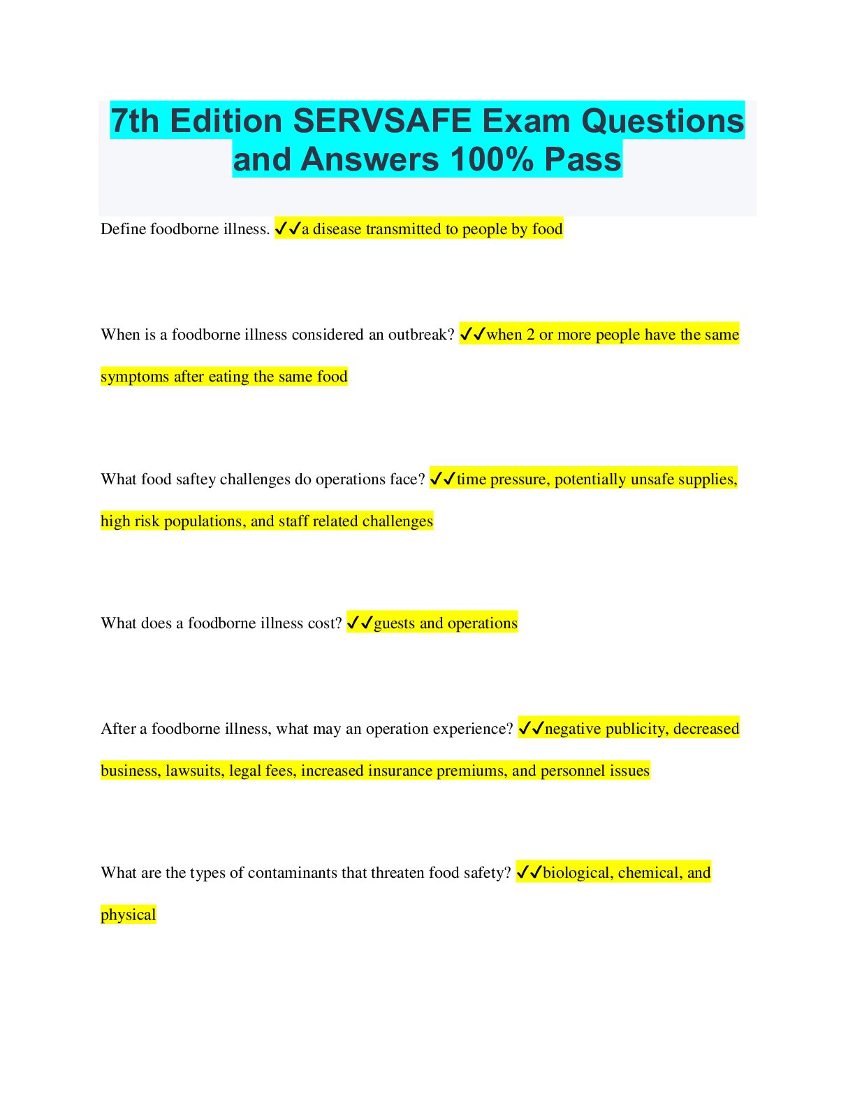 Safety Management > EXAM > 7th Edition SERVSAFE Exam Questions and Answers 100% Pass (All)
