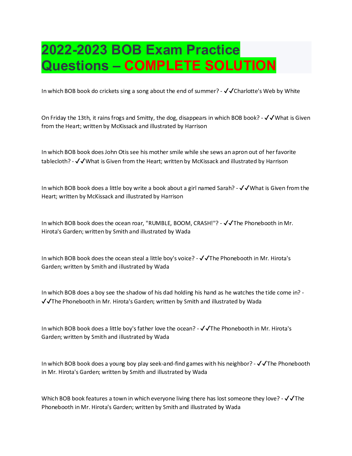 Literary Studies > EXAM > 2022-2023 BOB Exam Practice Questions – COMPLETE SOLUTION (All)