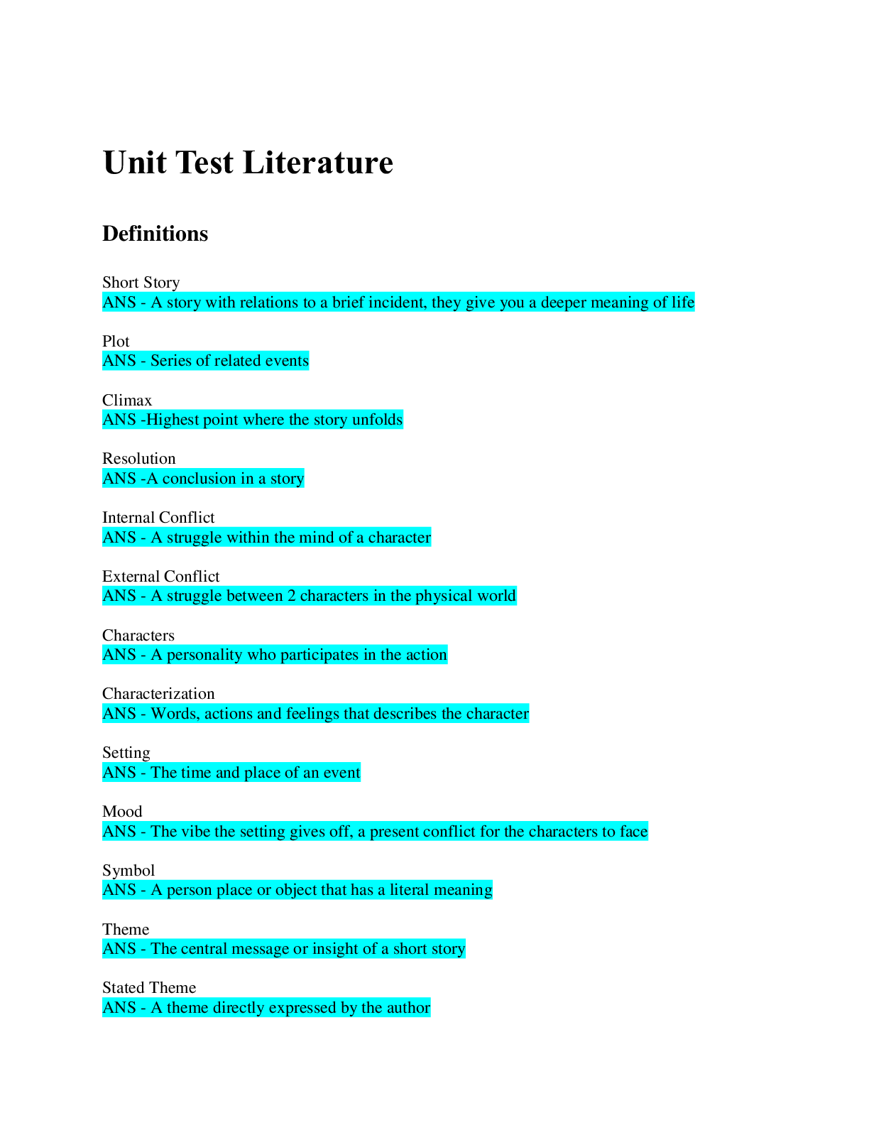 Literary Studies > EXAM > literature: unit test 2 /100% ACCURATE ANSWERS (All)