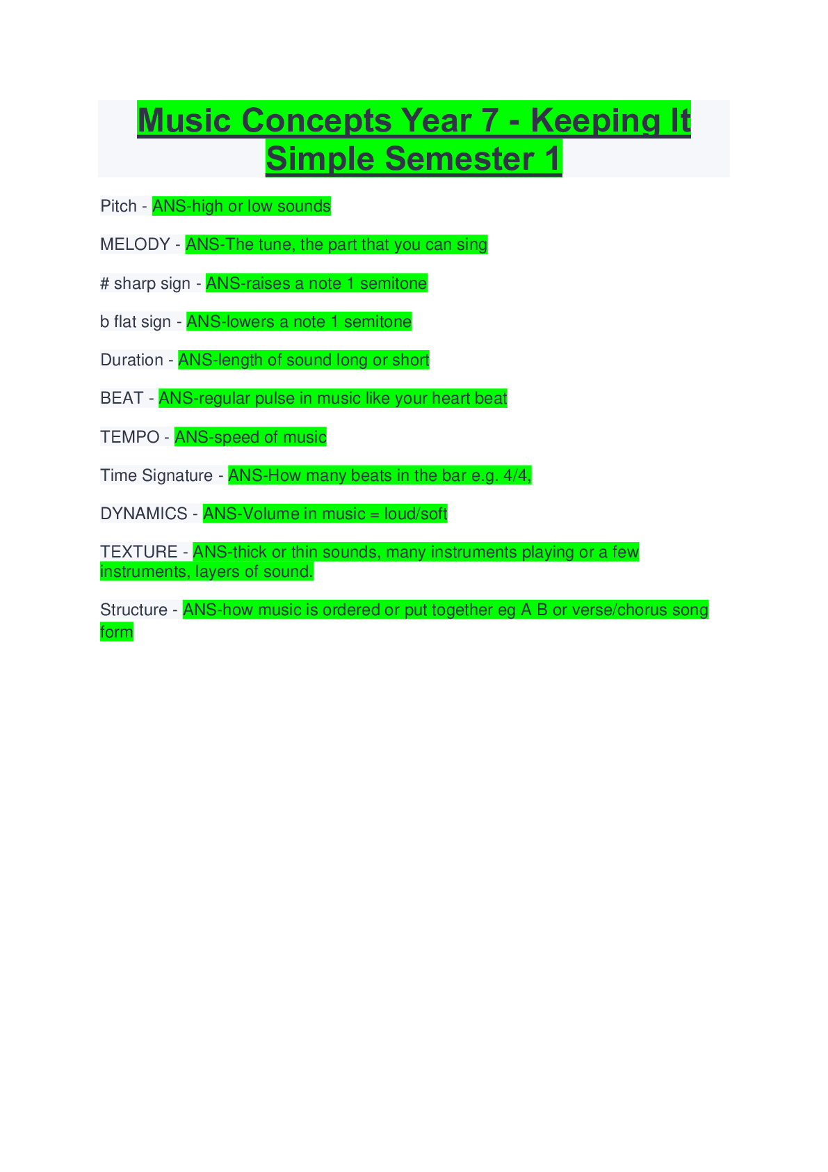 Music > EXAM > Music Concepts Year 7 - Keeping It Simple Semester 1 (All)