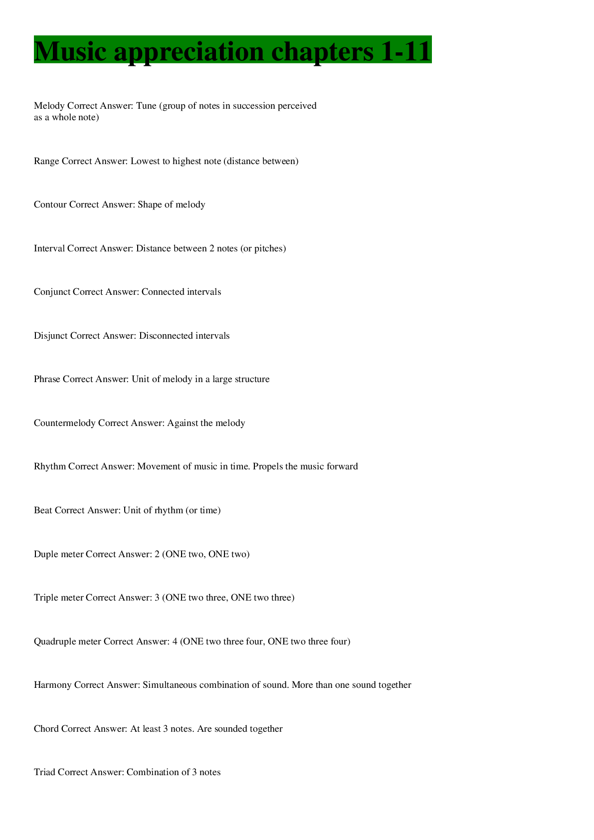 Music > EXAM > Music appreciation chapters 1-11 QUESTIONS AND ANSWERS| GRADED A (All)