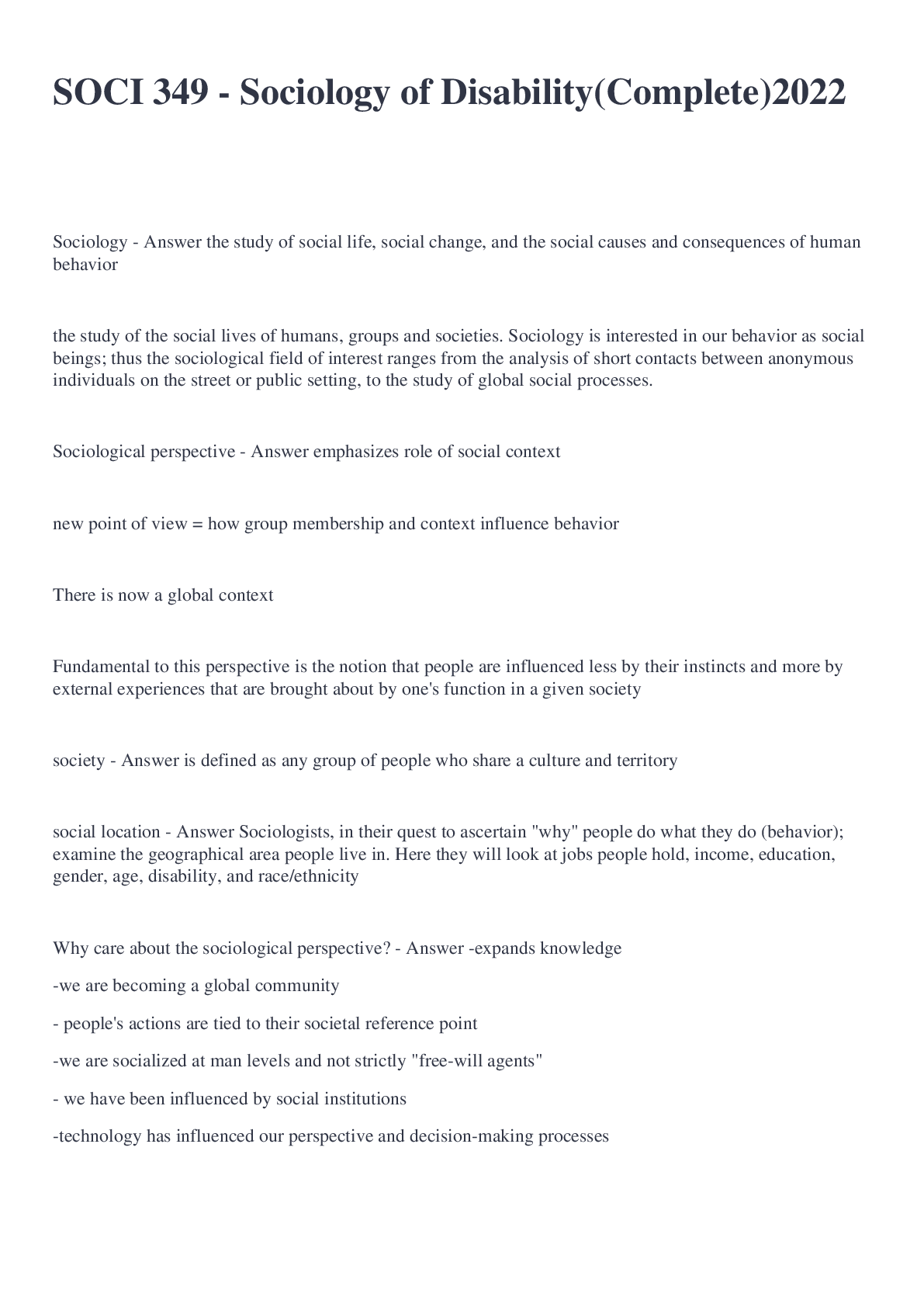 Sociology > EXAM > SOCI 349 - Sociology of Disability(Complete)2022 (All)
