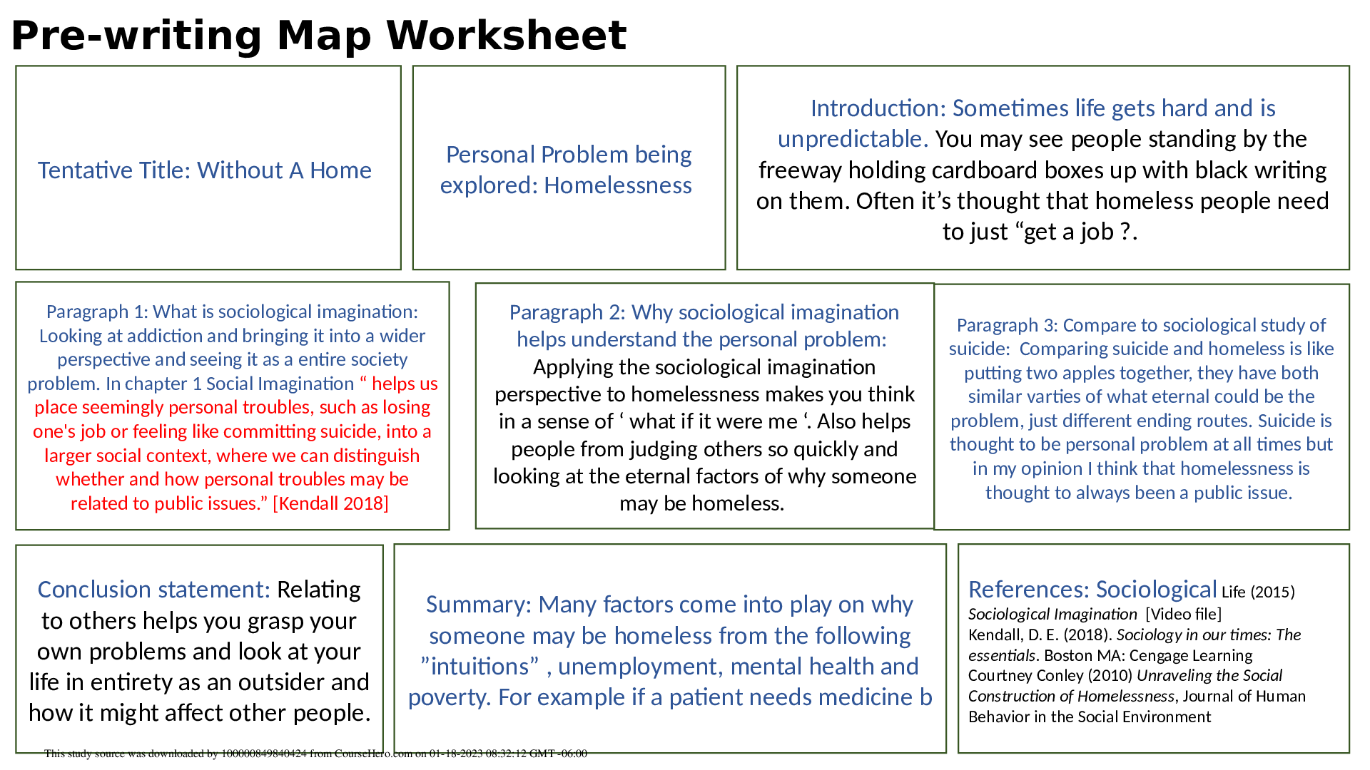 Sociology > EXAM > SOCS 185N Week 1 Sociological Imagination Pre-Writing Map (GRADED A) (All)