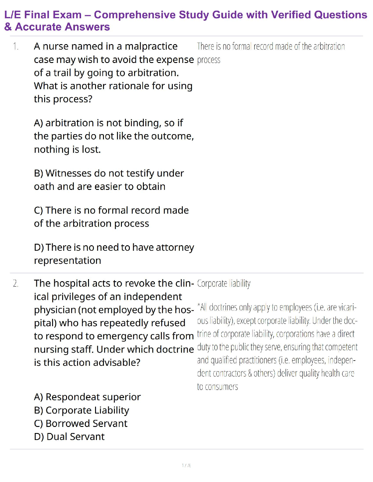 CITI Ethics, Responsible Conduct, RCR, Law, HTH And IRB > EXAM > L/E Final Exam – Comprehensive Study Guide with Verified Questions & Accurate Answers (All)