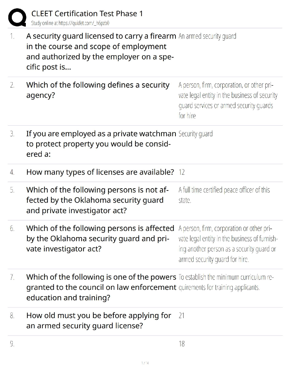CITI Ethics, Responsible Conduct, RCR, Law, HTH And IRB > EXAM > CLEET Certification Test Phase 1 (All)