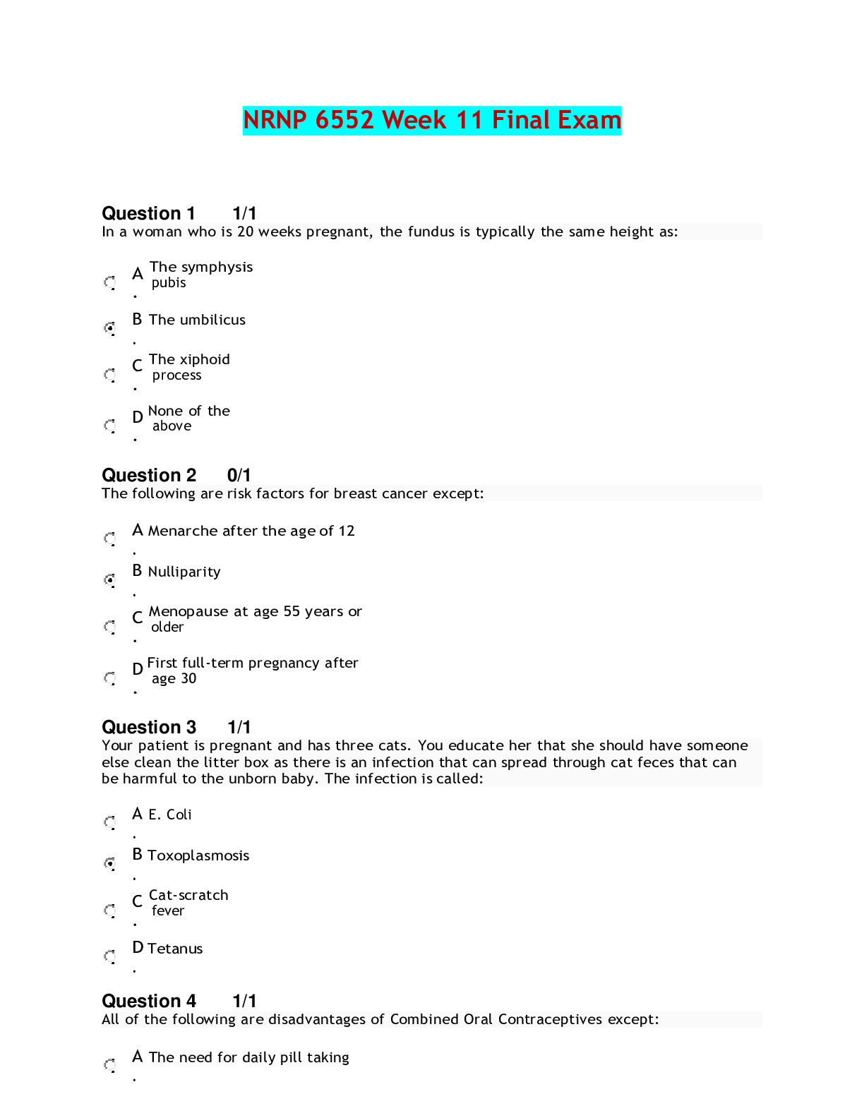 NRNP 6552 Women's health final exam > EXAM > NRNP 6552 Week 11 Final Exam | 100 Questions and Answers (All)