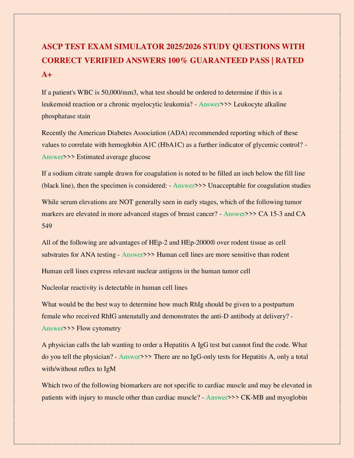 ASCP Hematology Exam-MLT > EXAM > ASCP TEST EXAM SIMULATOR 2025/2026 STUDY QUESTIONS WITH CORRECT VERIFIED ANSWERS 100% GUARANTEED PASS | RATED A+ (All)