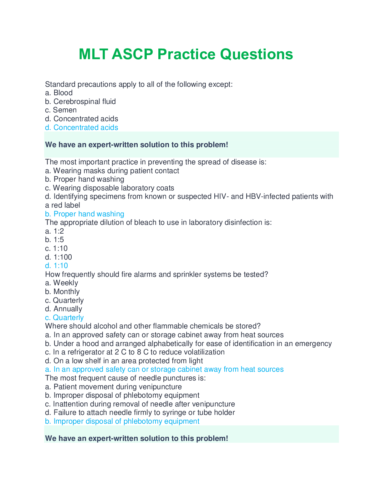 Pathology > EXAM > MLT ASCP Practice Questions and answers complete solution 2024/2025 Rated A+ (All)