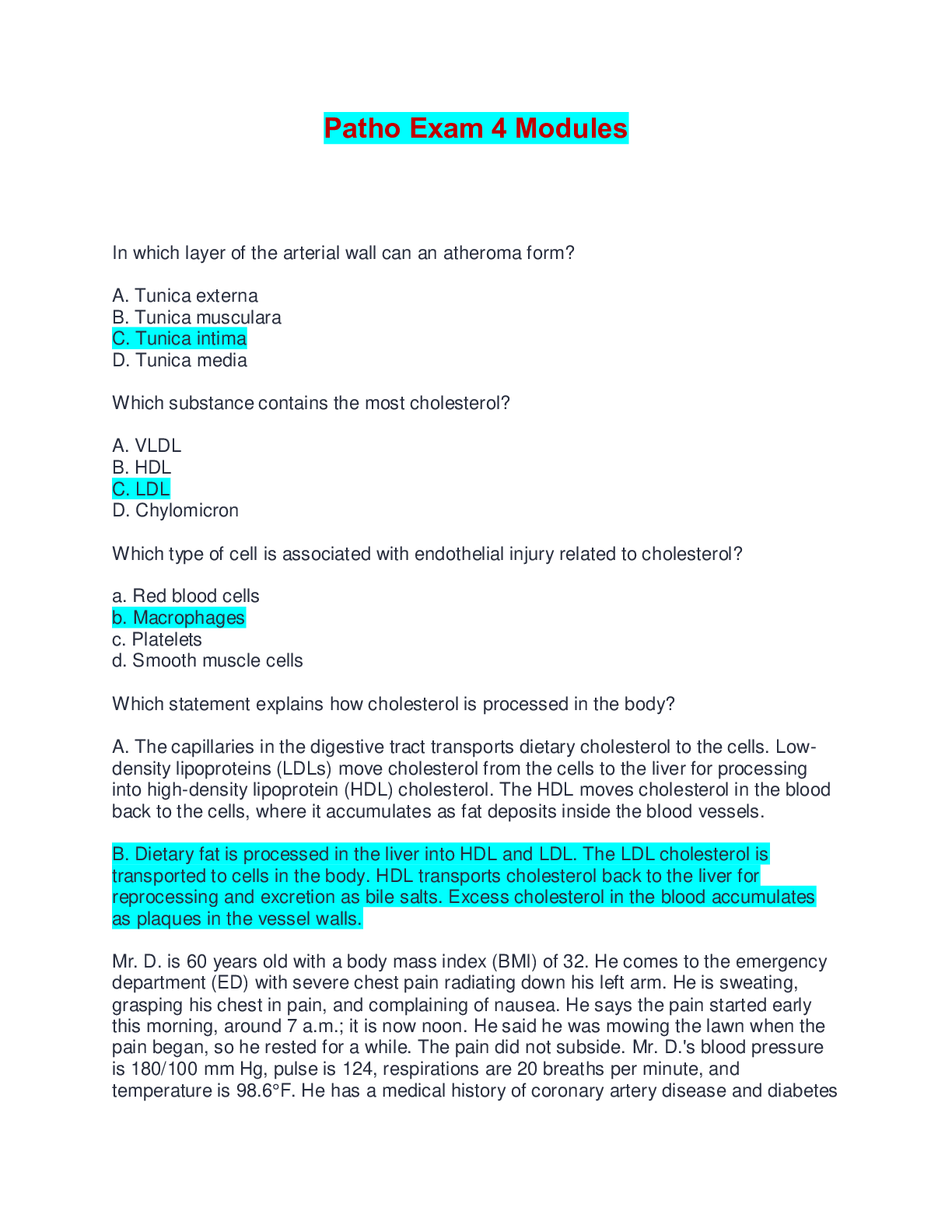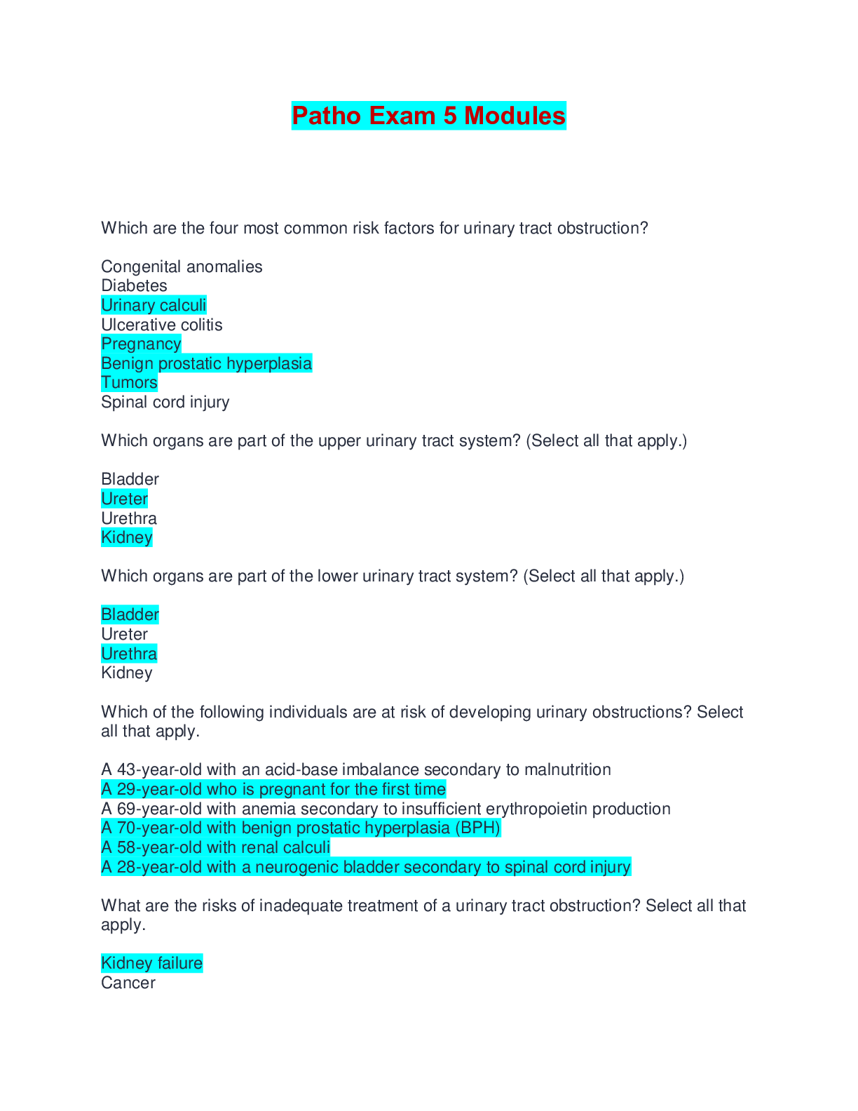 Pathology > EXAM > Patho Exam 4 Modules | Questions with Verified Answers (All)