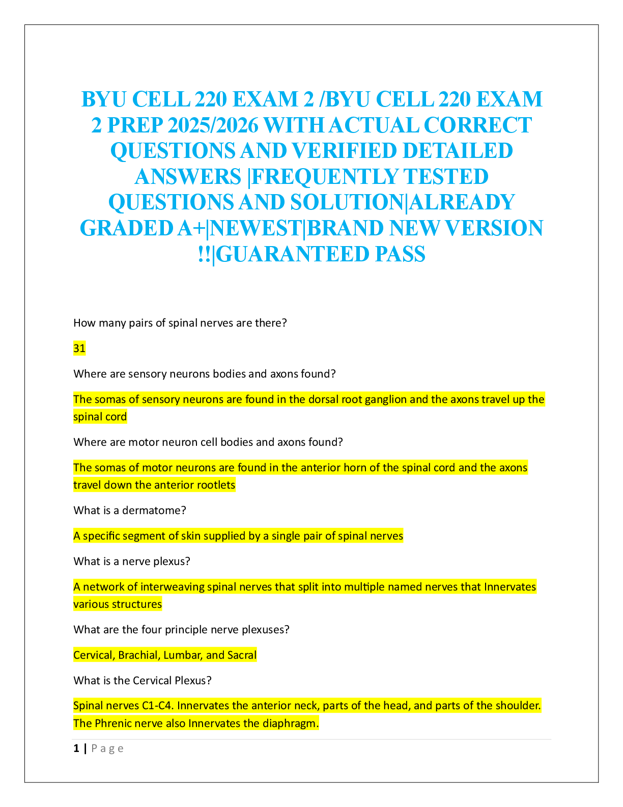 Human Anatomy and Physiology > EXAM > BYU CELL 220 EXAM 2 /BYU CELL 220 EXAM 2 PREP (All)