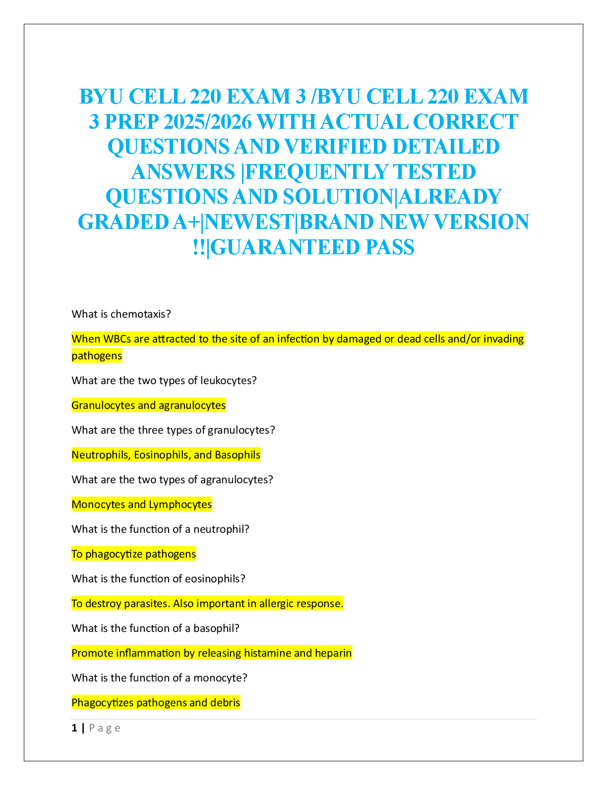 Human Anatomy and Physiology > EXAM > BYU CELL 220 EXAM 3 /BYU CELL 220 EXAM 3 PREP (All)