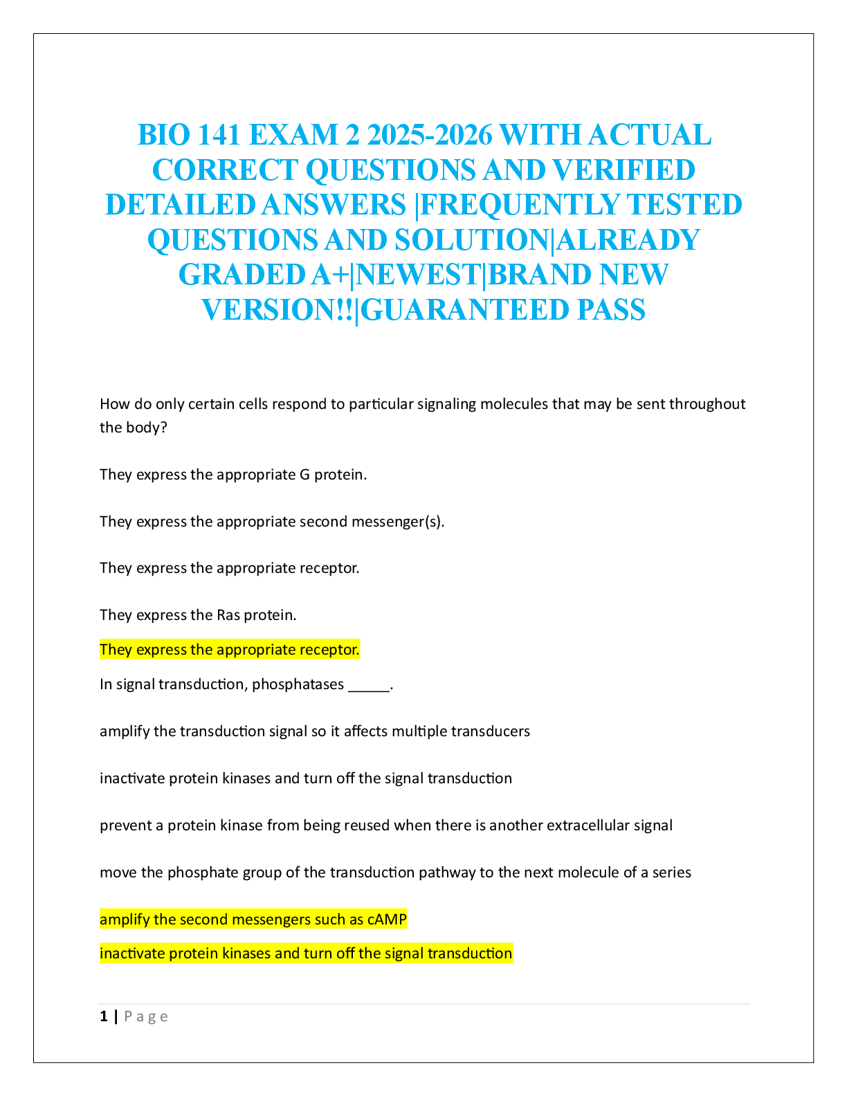 Human Anatomy and Physiology > EXAM > BIOD 152 FINAL EXAM 2026/2027 (All)