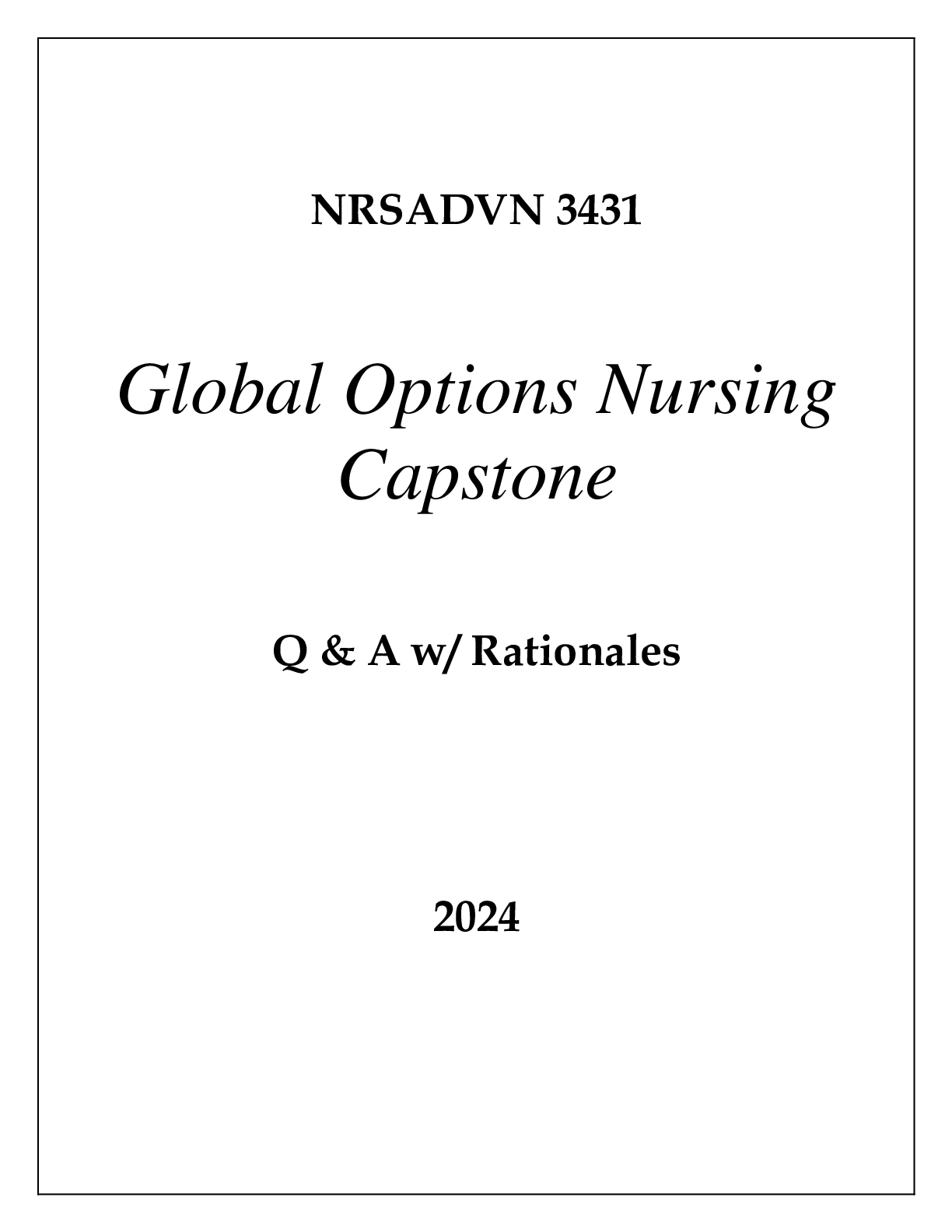 *NURSING > EXAM > NURSING 3431 GLOBAL OPTIONS NURSING CAPSTONE EXAM Q & A 2024 (All)