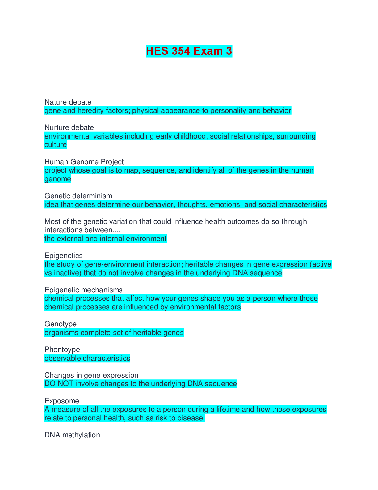 Health Care > EXAM > HES 354 Exam 3 | Questions and Answers (All)