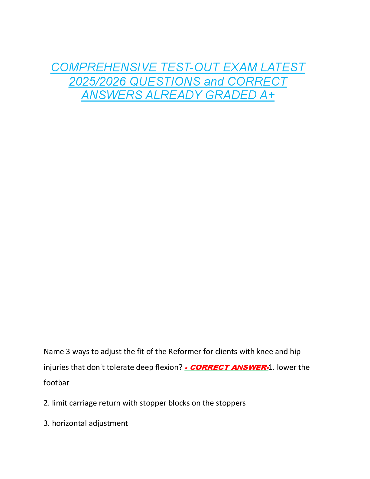 *NURSING > EXAM > COMPREHENSIVE TEST-OUT EXAM LATEST 2025/2026 QUESTIONS and CORRECT ANSWERS ALREADY GRADED A+ (All)
