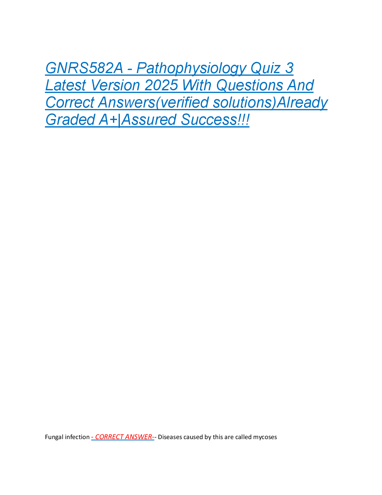 *NURSING > EXAM > GNRS582A - Pathophysiology Quiz 3 Latest Version 2025 With Questions And Correct Answers(verified solutions)Already Graded A+|Assured Success!!! (All)