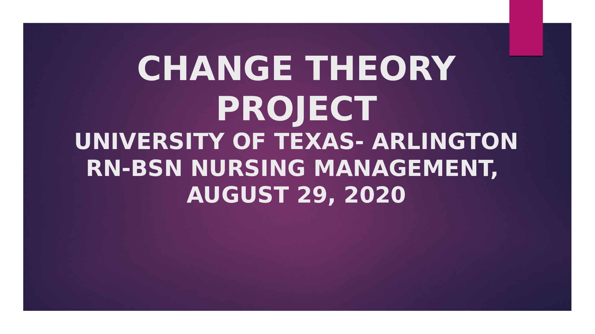*NURSING > Presentation > CHANGE THEORY PROJECT UNIVERSITY OF TEXAS- ARLINGTON RN-BSN NURSING MANAGEMENT, AUGUST 29, 2020-Prevention of Deep Vein Thrombosis (DVT) (All)