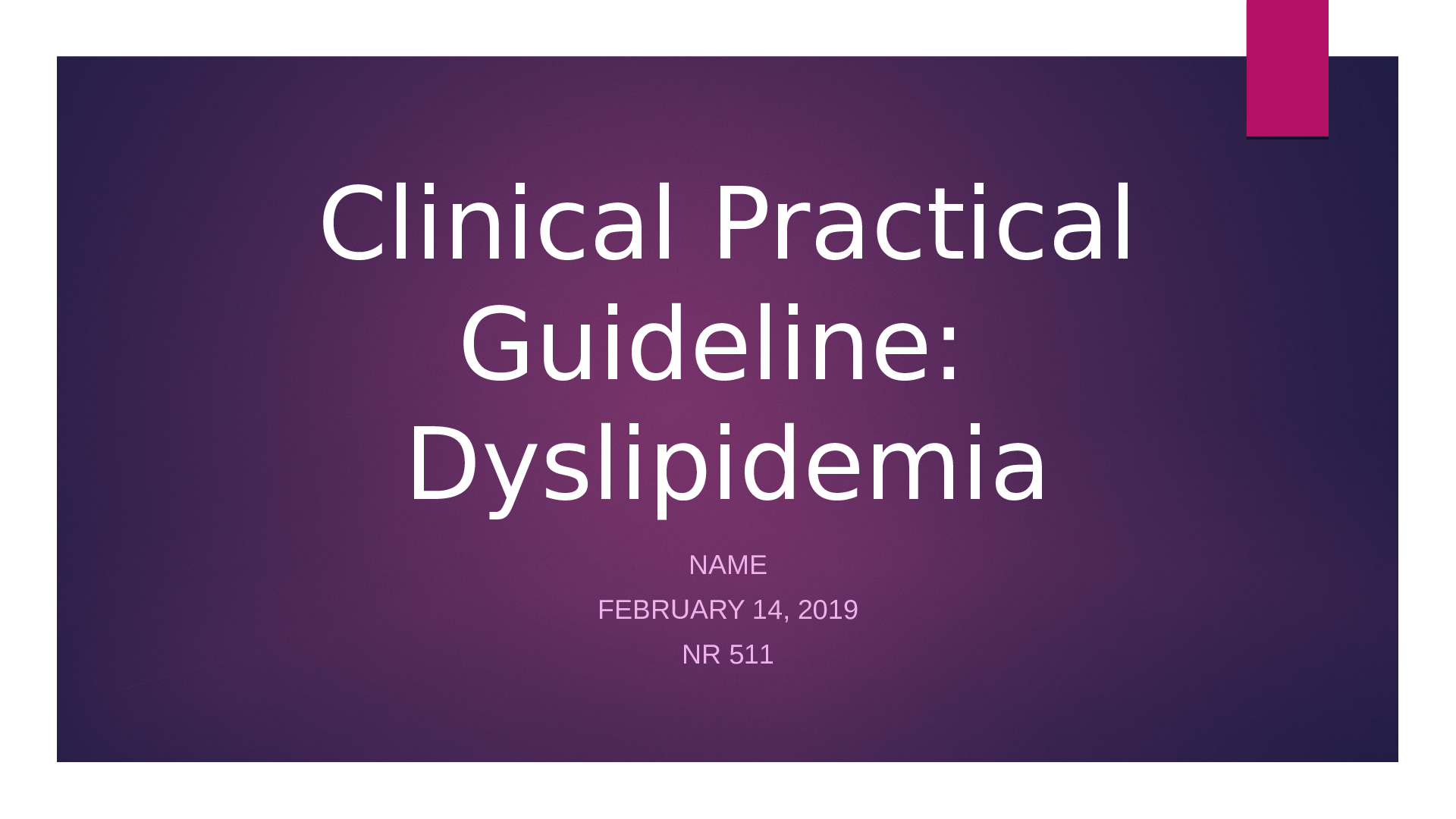 *NURSING > Presentation > NR 511 Clinical Practical Guideline: Dyslipidemia (All)