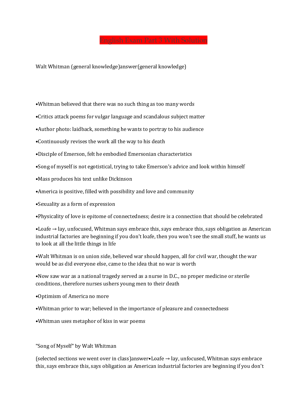 EnglishPOEM ANALYSIS > English Exam Part 3 With Solution (All)