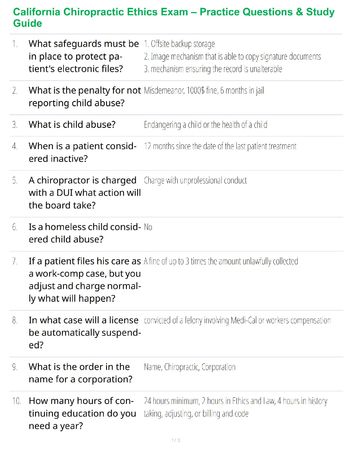 Business Ethics > STUDY GUIDE > California Chiropractic Ethics Exam – Practice Questions & Study Guide (All)