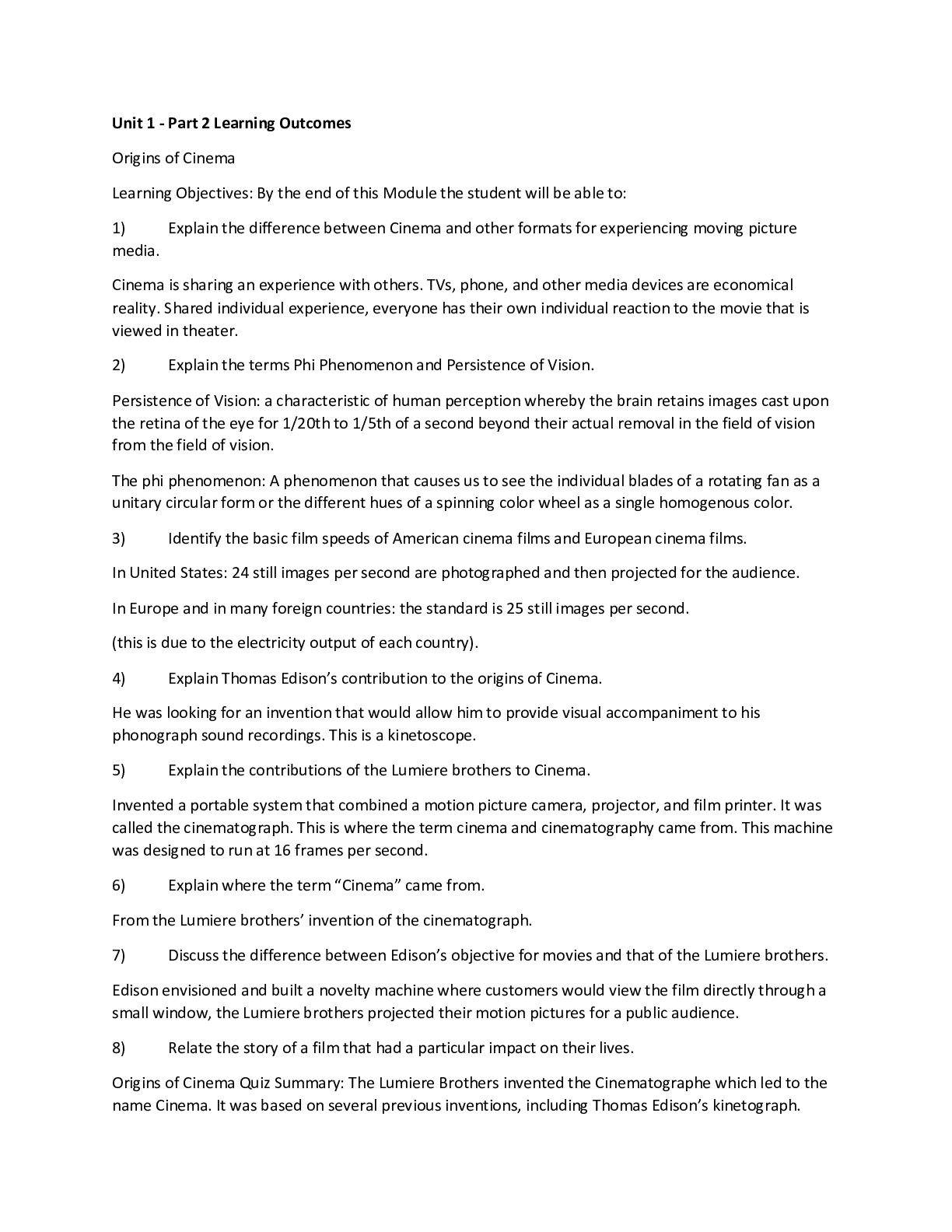 Literary Studies > STUDY GUIDE > Origins of cinema midterm_study_guide (All)