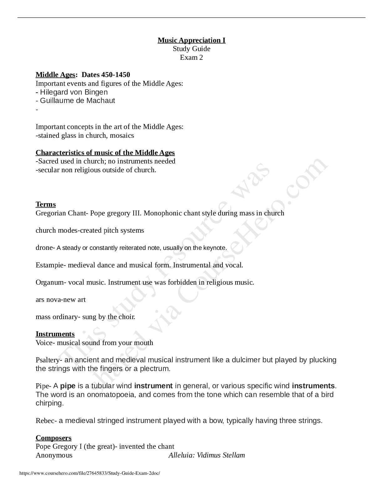 Music > STUDY GUIDE > Clemson UniversityMUSC 2100Actual Assignment 5 Post (All)