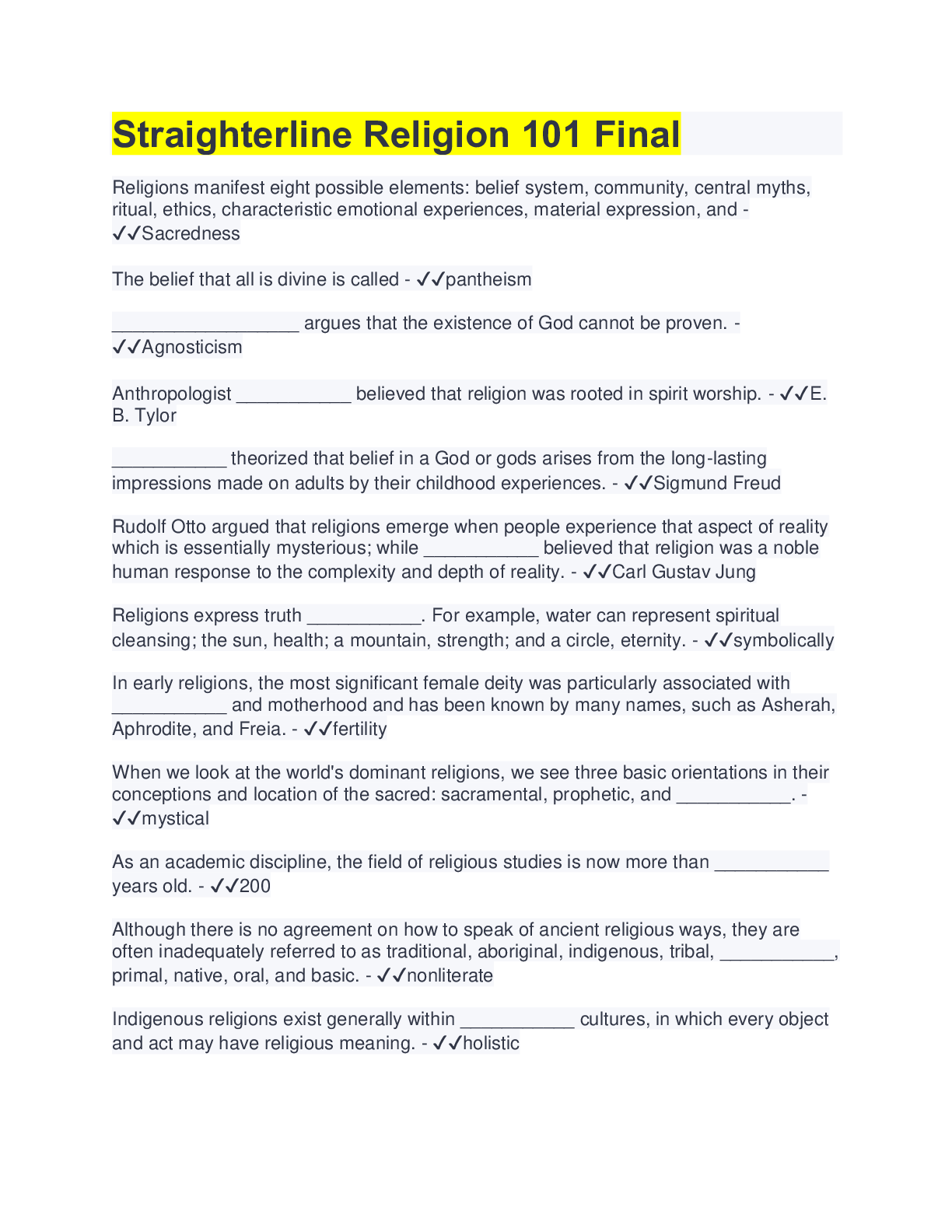 Religious Studies > STUDY GUIDE > Straighterline Religion 101 Final Exam Study Guide | 263 Questions with 100% Correct Answers (All)