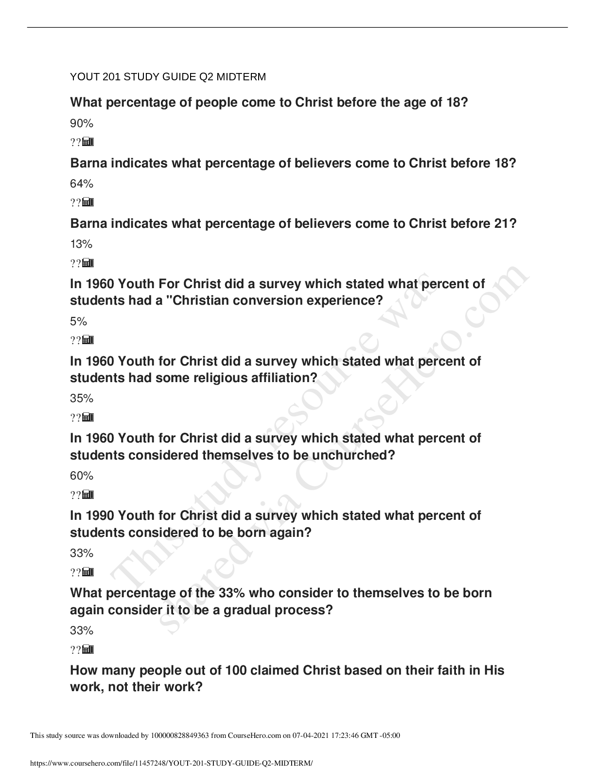 Sociology > STUDY GUIDE > YOUT 201 STUDY GUIDE Q2 MIDTERM (All)