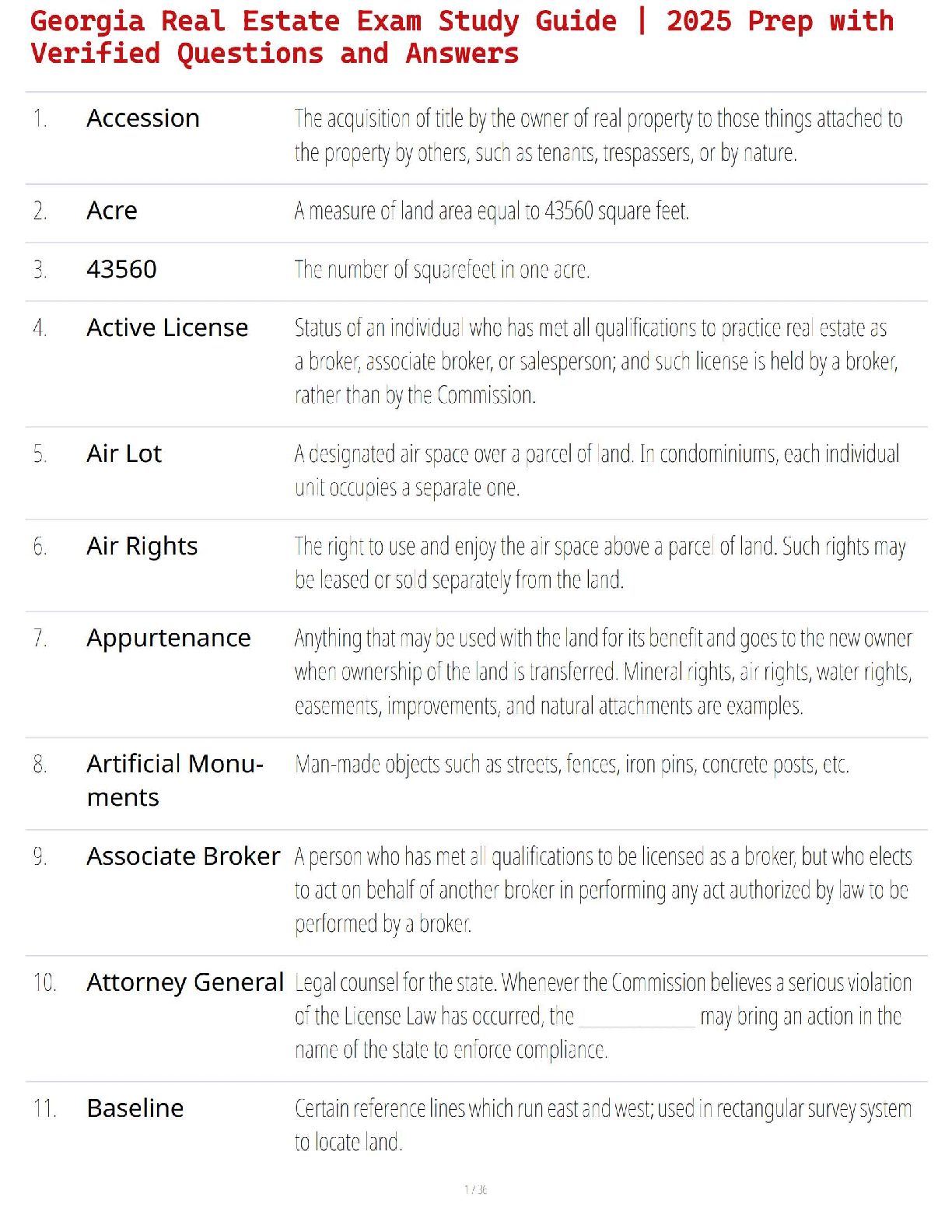 Real Estate > STUDY GUIDE > Georgia Real Estate Exam Study Guide | 2025 Prep with Verified Questions (All)