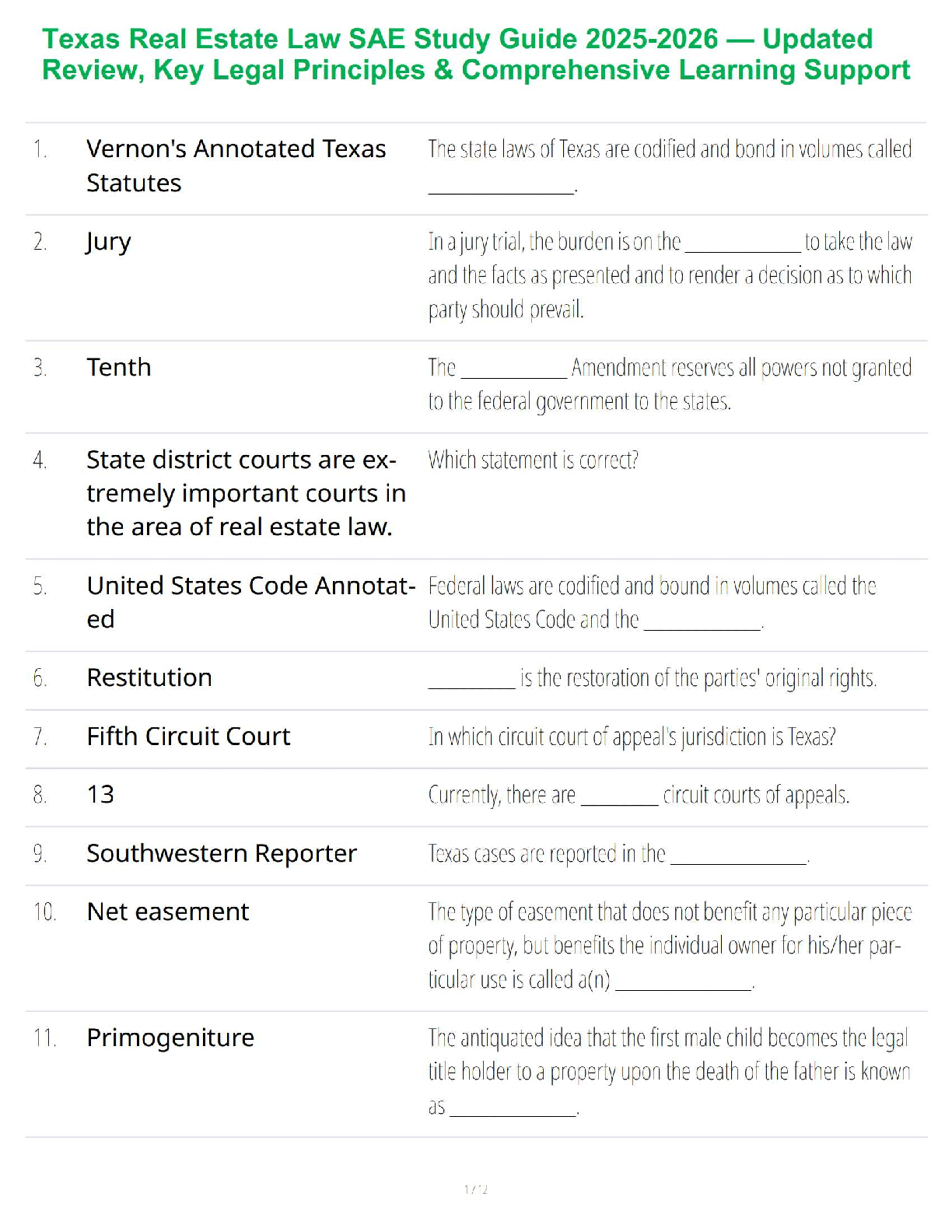 Real Estate > STUDY GUIDE > Texas Real Estate Law SAE Study Guide 2025-2026 — Updated Review, Key Legal Principles & Comprehensive Learning Support (All)
