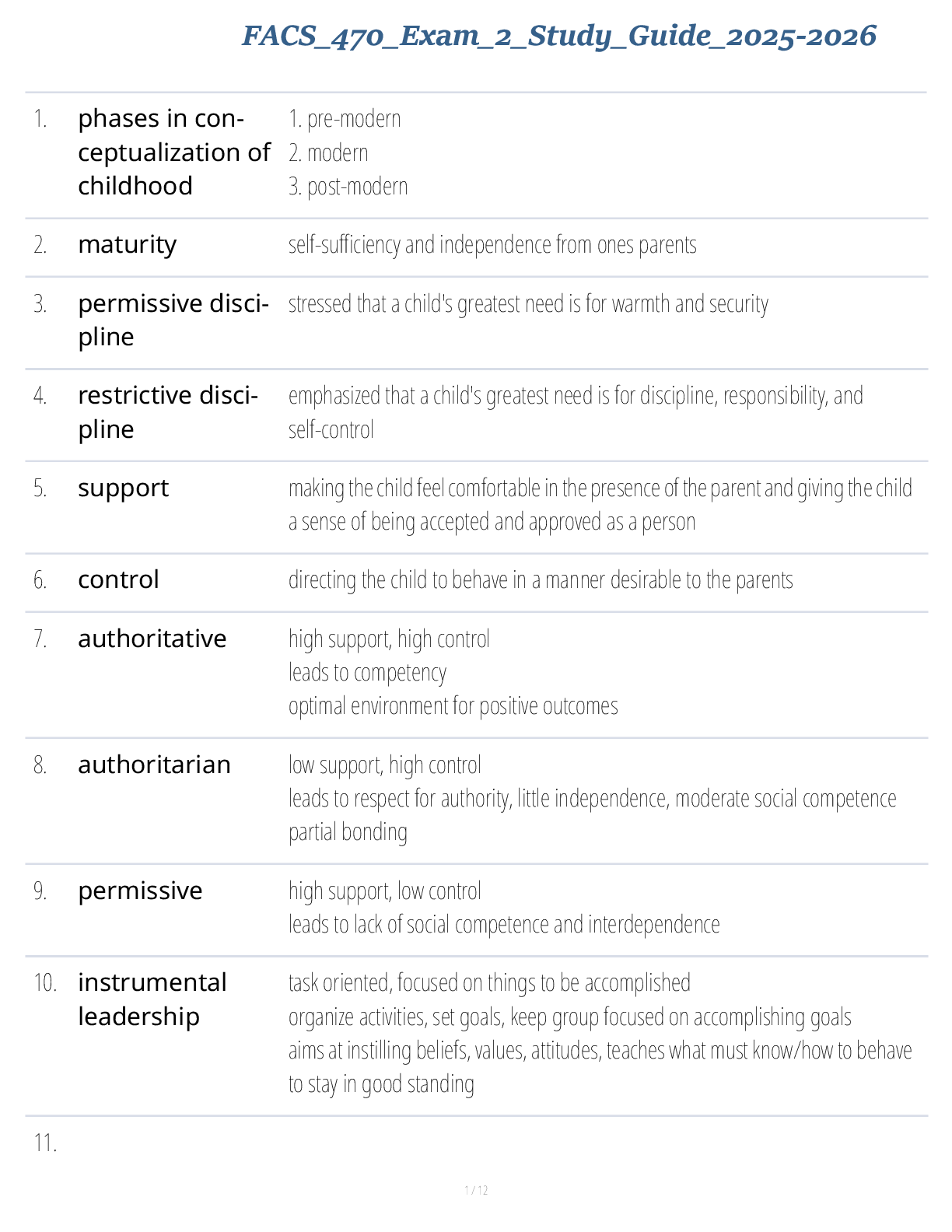 FAMILY NP > STUDY GUIDE > FACS 470 Exam 2 Study Guide 2025 (All)