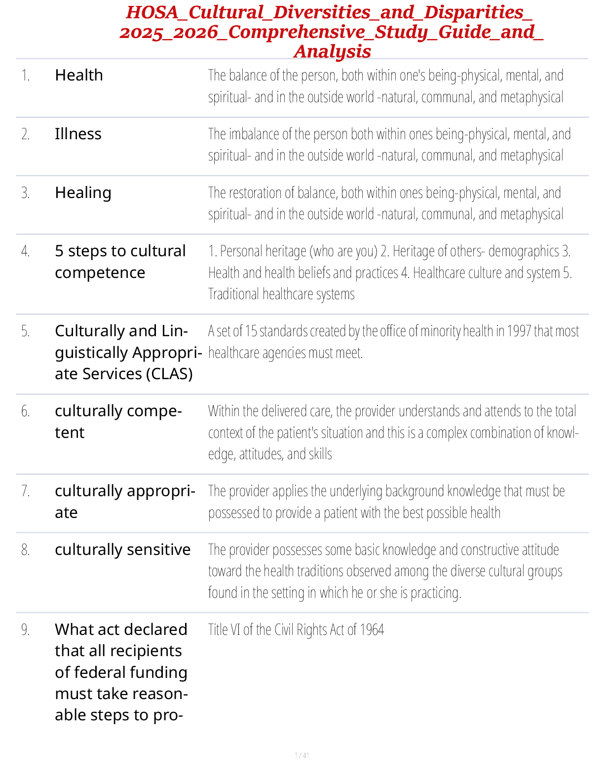 community health nursing > STUDY GUIDE > HOSA Cultural Diversities and Disparities 2025 Comprehensive Study Guide and Analysis (All)