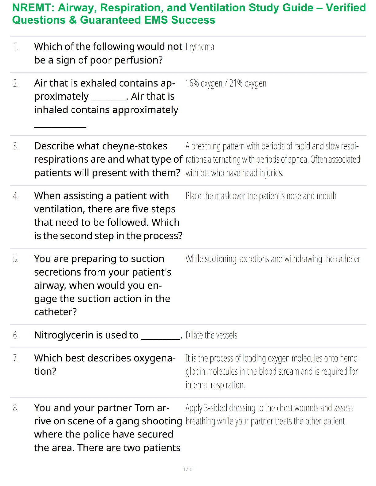 Airport Operations and Management > STUDY GUIDE > NREMT: Airway, Respiration, and Ventilation Study Guide – Verified Questions & Guaranteed EMS Success (All)