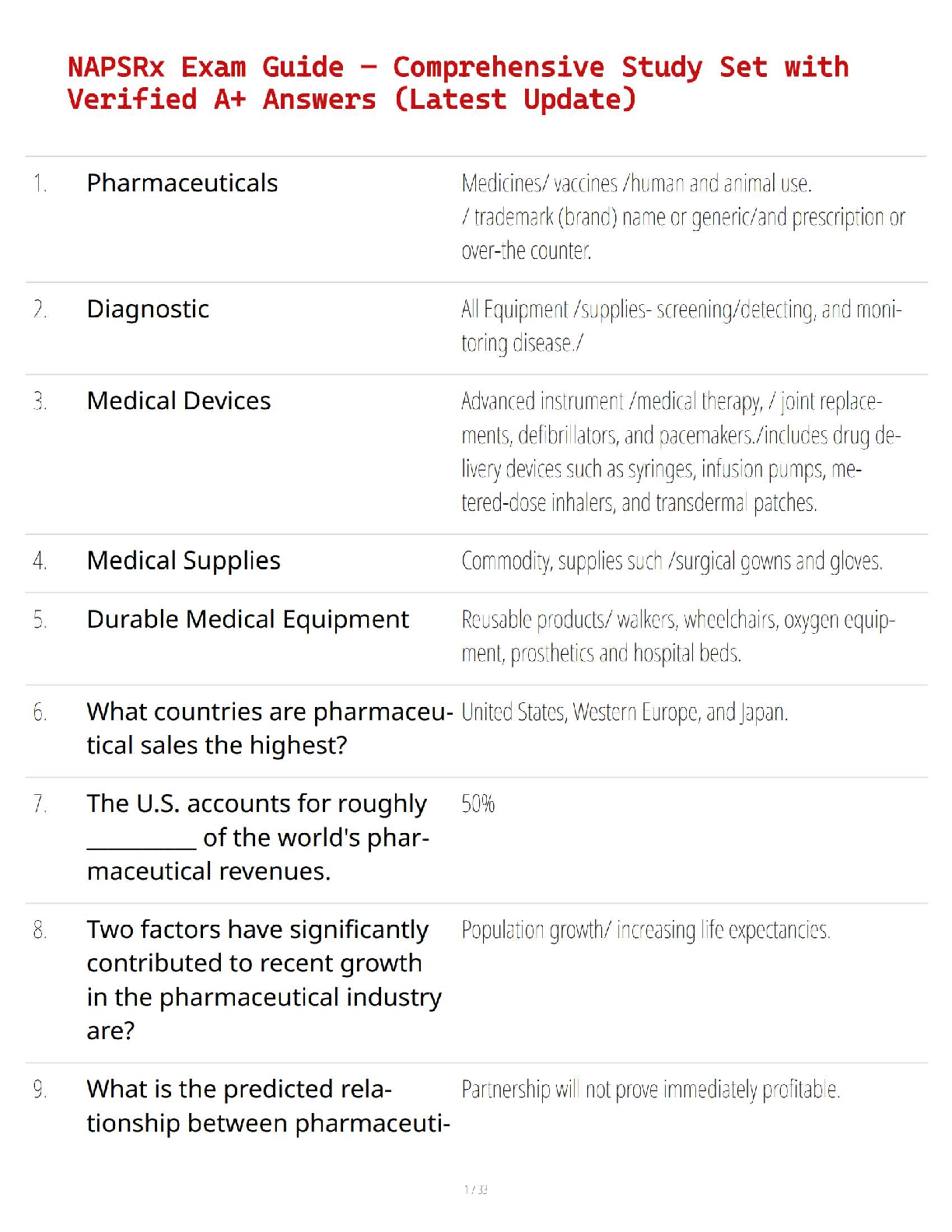 Pharmacology for Nursing Care > STUDY GUIDE > NAPSRx Exam Guide – Comprehensive Study Set with Verified A+ Answers (Latest Update) (All)