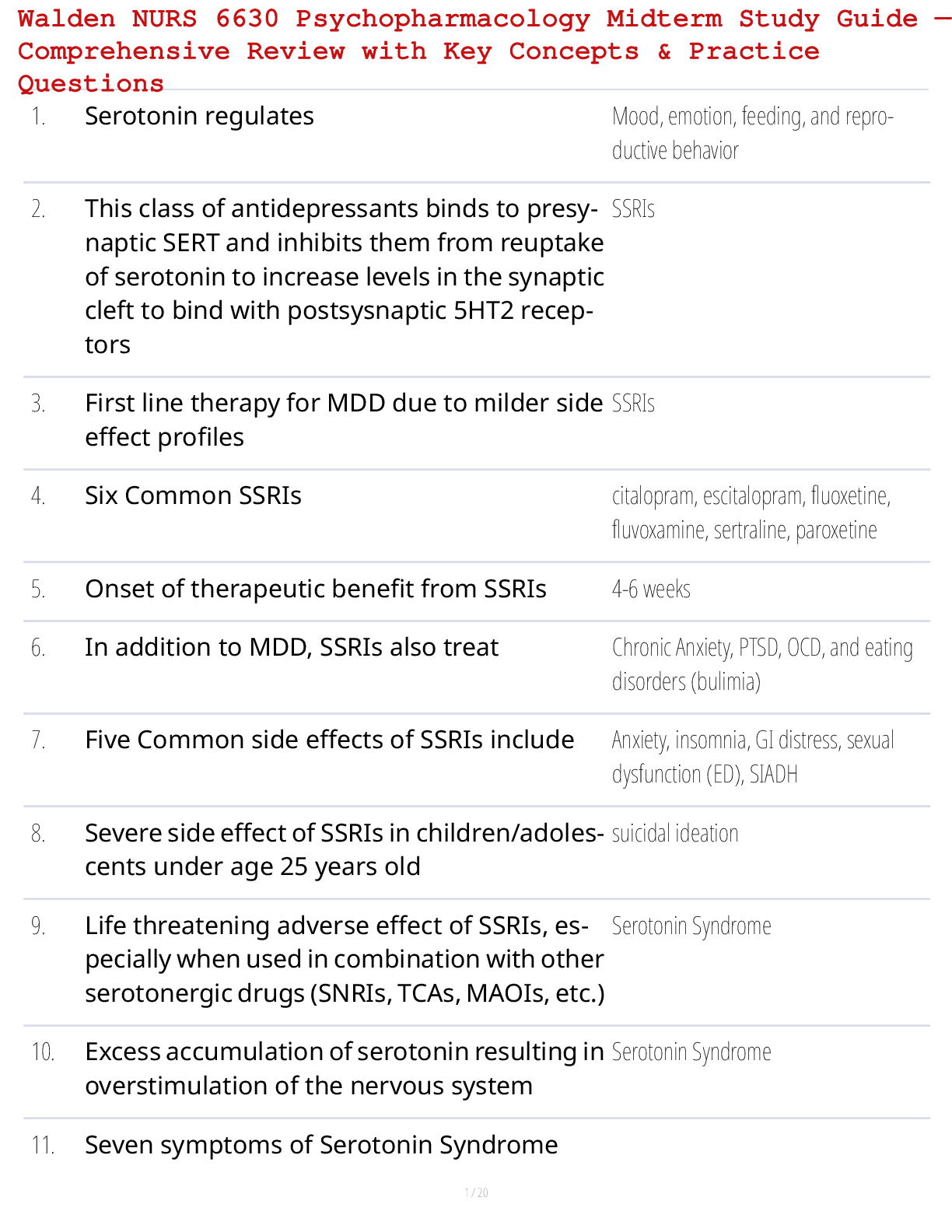 Pharmacology for Nursing Care > STUDY GUIDE > Walden NURS 6630 Psychopharmacology Midterm Study Guide — Comprehensive Review with Key Concepts & Practice Questions (All)