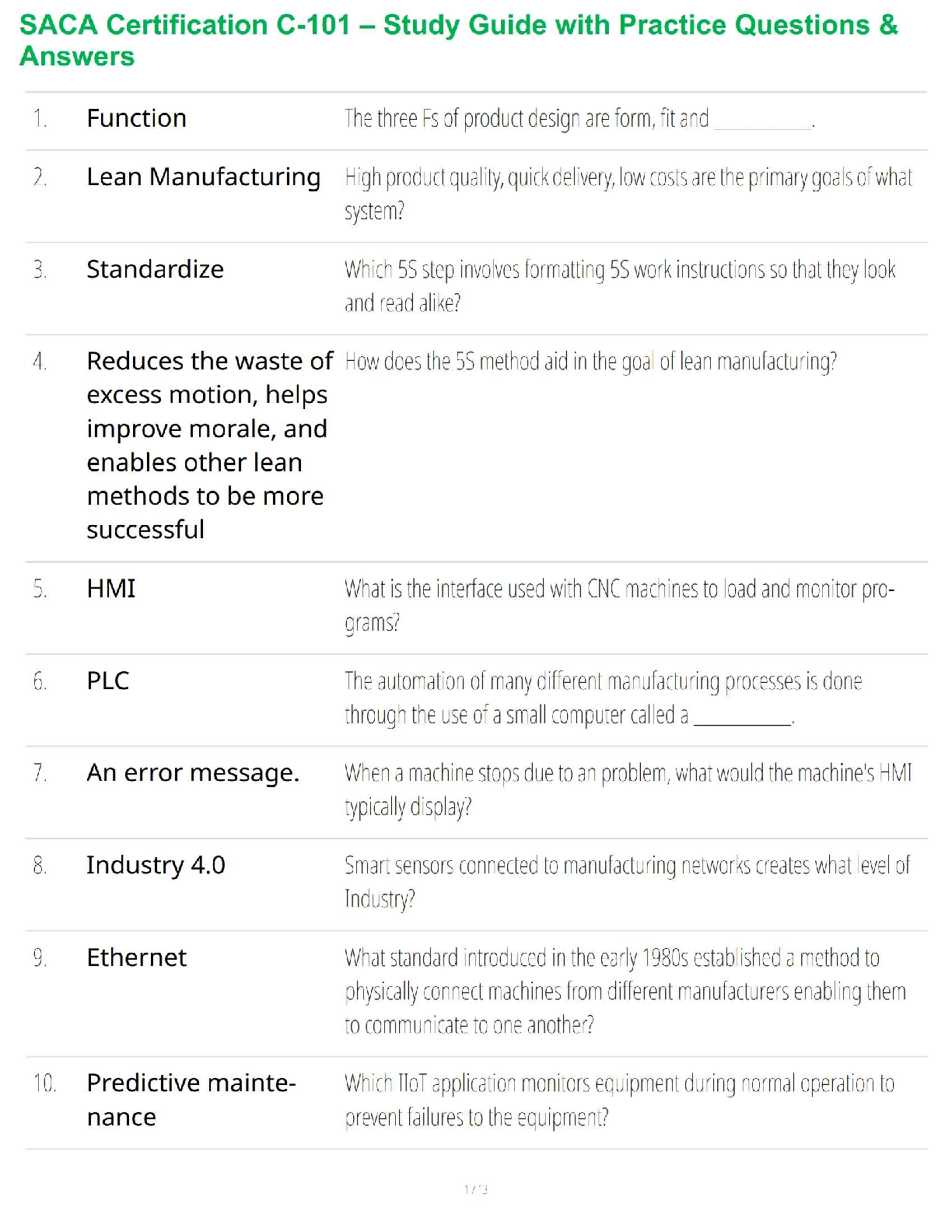 Industrial Chemistry > STUDY GUIDE > SACA Certification C-101 – Study Guide with Practice Questions & Answers (All)