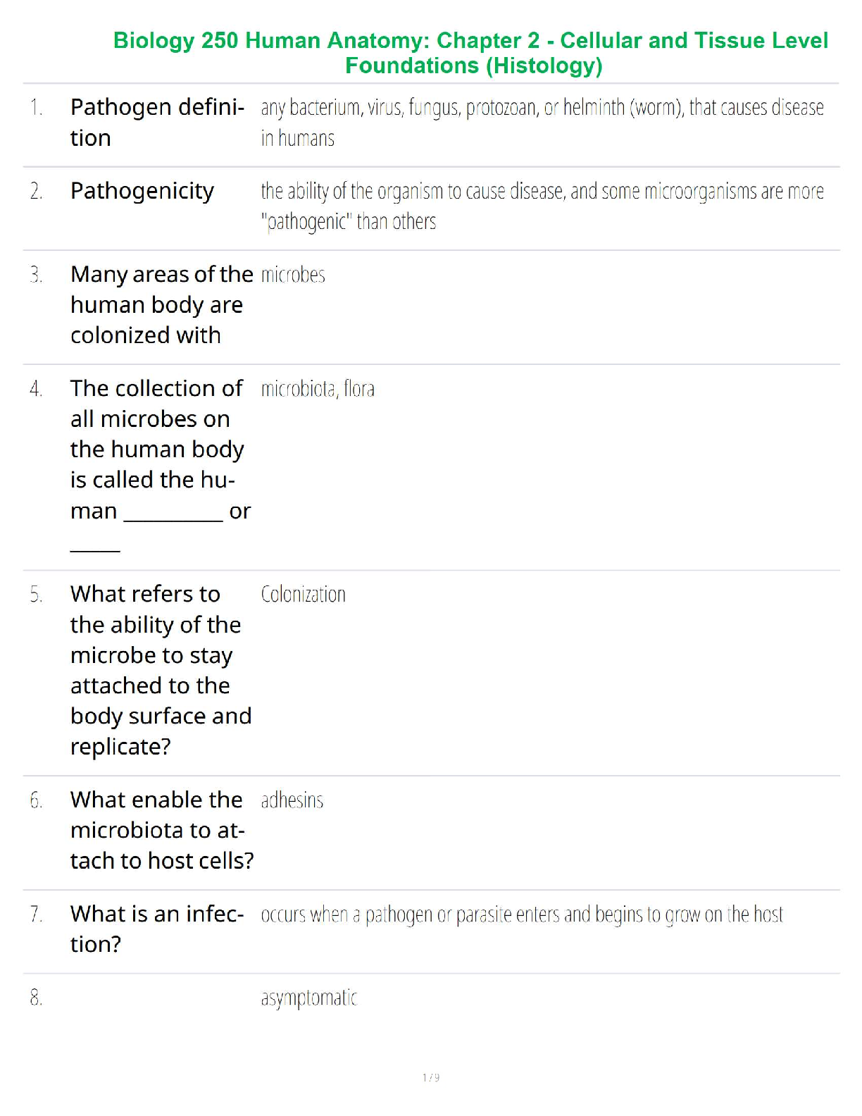 Human Anatomy and Physiology > STUDY GUIDE > Biology 250 Human Anatomy: Chapter 2 - Cellular and Tissue Level Foundations (Histology) (All)